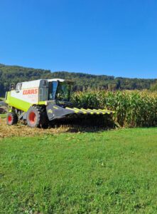 Žložljivi 6-redni heder za žetev koruze. Medvrstna razdalja 70 cm.