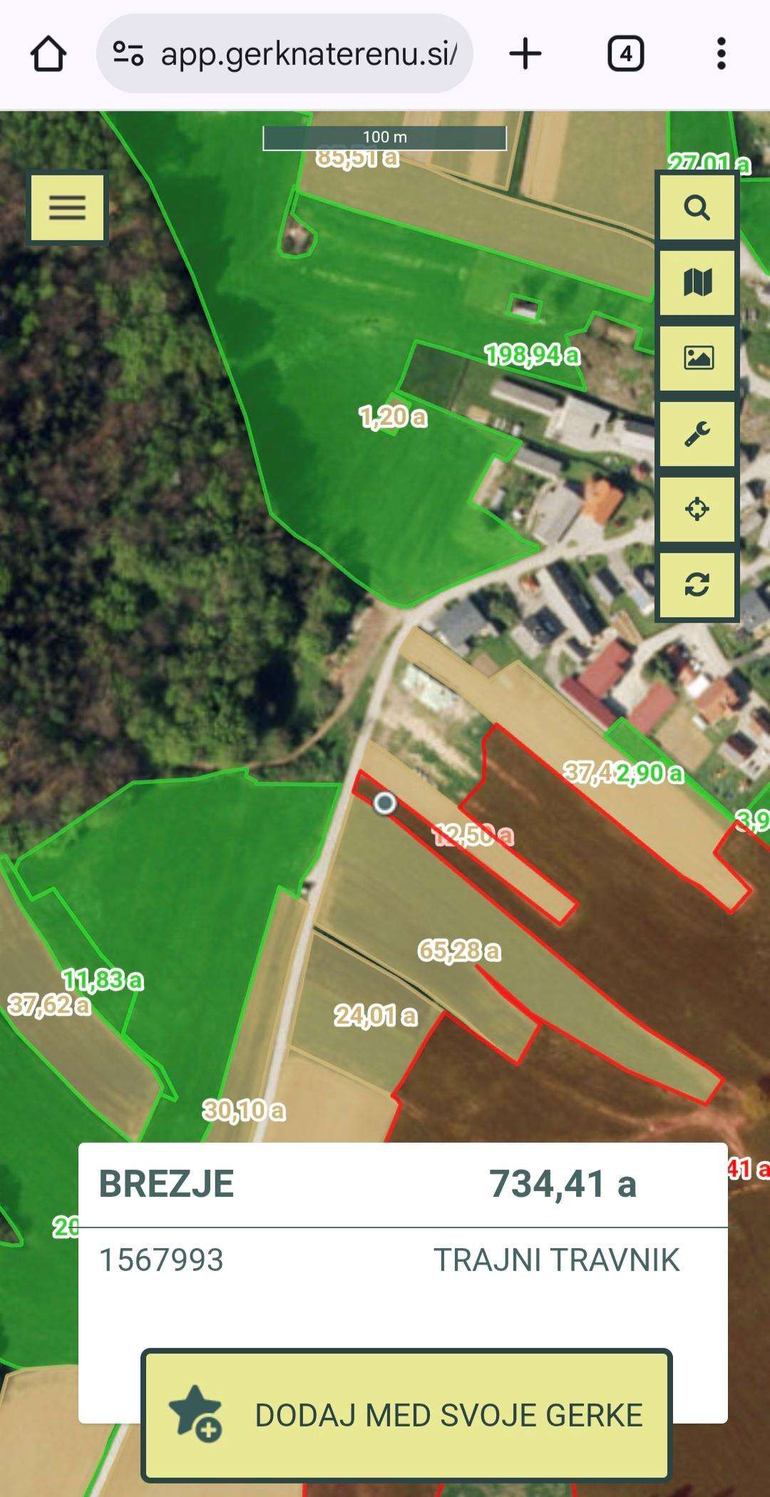 V mobilni aplikaciji lahko spremljate na kateri GERK površini se nahajate.